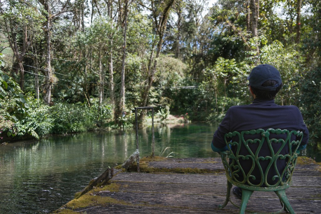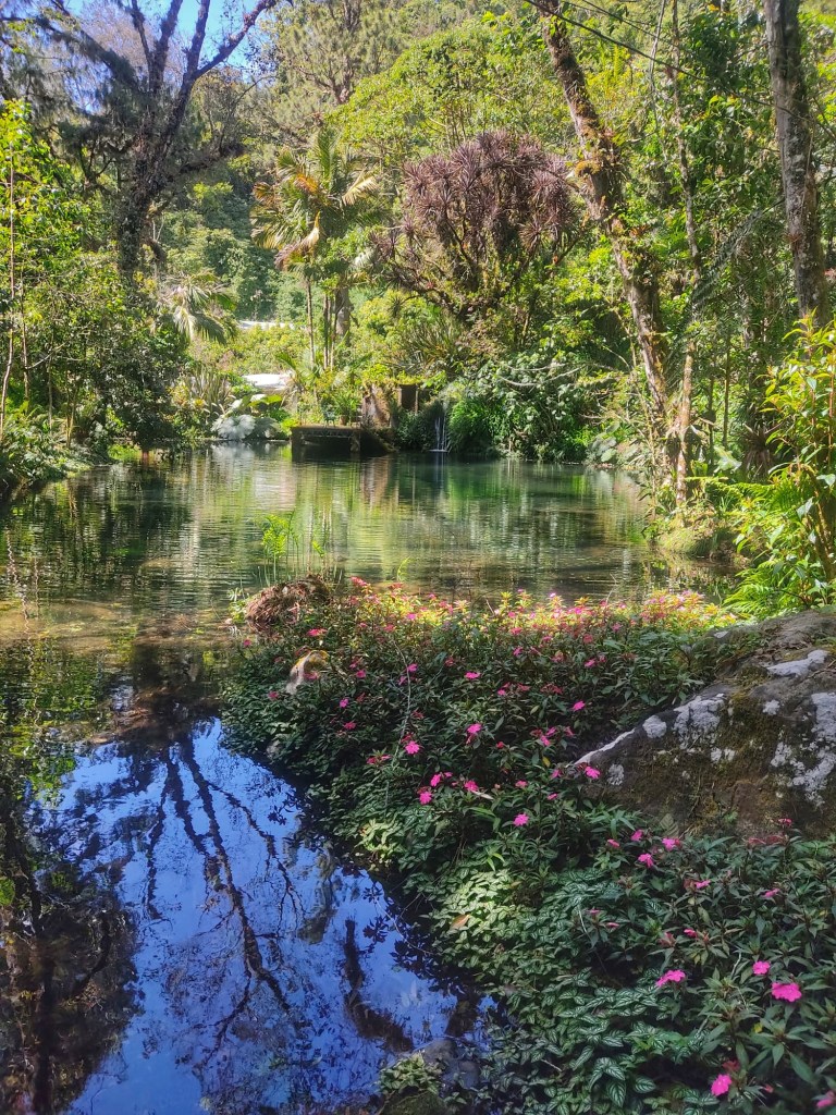 Tout à coup notre guide crit le mot magique « Quetzal » !! J’en vois alors deux passés au loin, enfin j’aperçois la couleur rougeâtre de leur ventre avant de les voir disparaître. Malheureusement pas eu le temps de faire la photo et Poupi n’a même pas réussi à les voir. Mais mon bonheur est quand même immense de savoir qu’ils étaient là. (Oui il m’en faut peu pour être heureuse 🥰).