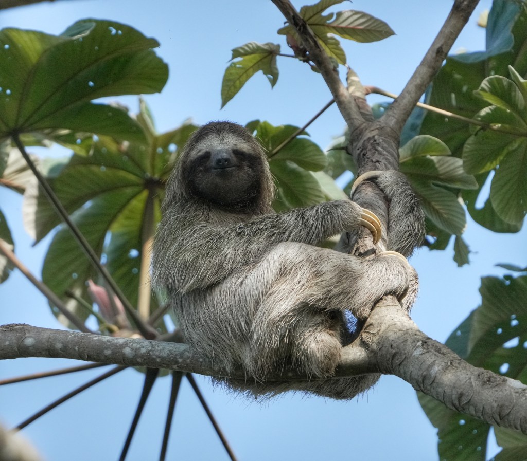 En plus nous sommes les seuls à rester ici pour deux nuits donc on peut profiter de l’endroit au maximum et surtout de la piscine 😁. Le mari de Clarisse est super sympa, quand il a vu notre super appareil photo et objectif il nous a tout de suite montrer le paresseux qui vit dans l’arbre juste à côté de la piscine. Autant vous dire qu’on a fait des allers-retours souvent pour aller l’admirer 🥰. On à également la chance de pouvoir photographier pleins de beaux oiseaux qui viennent prendre la pose juste devant nous. J’ai pu encore apercevoir un beau toucan. Merci encore 1000 fois à la nature 🙏.