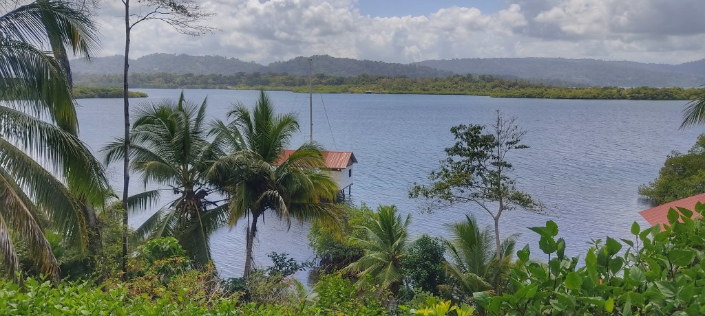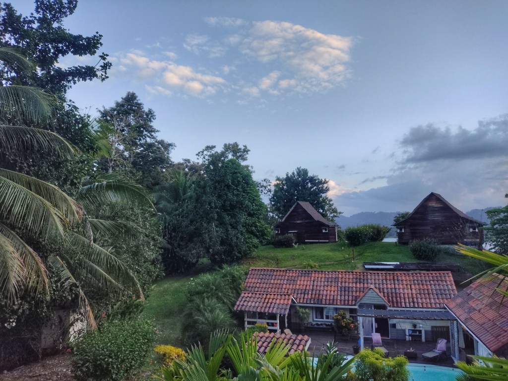 Aujourd’hui on reste sur la même île (San Cristóbal) mais on change de logement. Celui ci n’avait pas d’autres disponibilités mais on voulait quand même venir passer une nuit ici, les photos nous ont donné envie. Cependant on arrive de l’autre côté de l’île, sur la propriété de Clarisse, une française venue s’installer au Panama il y a quelques années, après ses parents, et coup de coeur ! Je veux vivre ici aussi ! Le lieu est magnifique, la vue imprenable et c’est le paradis pour les amoureux d’animaux comme nous 😍.