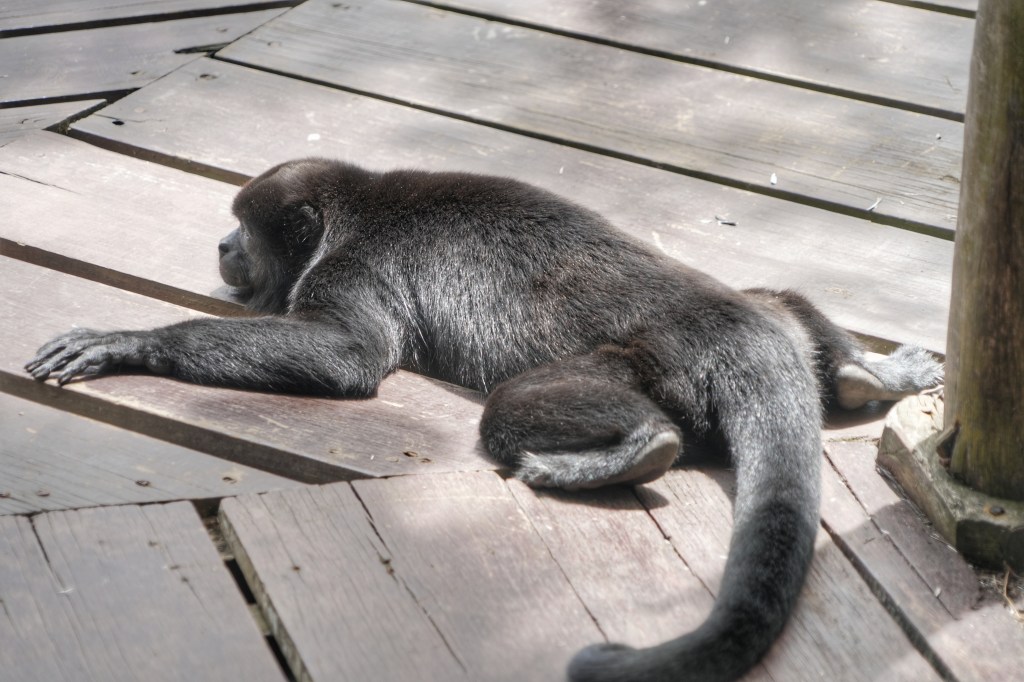 Une journée un peu spéciale puisque l’on va encore voir des animaux mais malheureusement ceux-là ne seront pas vraiment en liberté. Il s’agit de la Monkey Island, un centre de sauvetage de singes victimes de trafic ou récupérés chez des particuliers qui n’en veulent plus. Francine a crée le centre il y a une vingtaine d’année et donne tout pour le bien-être des pensionnaires. Elle a réussi à relâcher certains d’entre eux mais pour la plupart ils ne sont pas aptes à vivre seuls dans la nature. Les singes hurleurs vivent la plupart du temps en semi-liberté sur l’île avec elle et les autres salariés. Le groupe de singes capucins à une immense cage mais il a accès à l’île voisine via un système de tunnel. Les singes écureuils quand à eux sont séparés : quelques uns avec les capucins et d’autres avec les singes hurleurs.