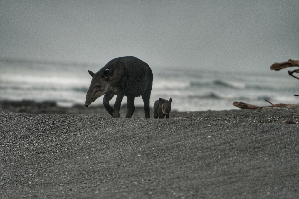 En venant ici on espérait bien sûr voir des tapirs, et la nature nous a gâtés, mais surtout des aras rouges. Et nos voeux ont été exaucés. Tout au long de la journée on était accompagné par leur cri si singulier et on n’a pu les photographier à plusieurs reprises, le bonheur quoi ! Et puis encore un merveilleux cadeau : on était en train d’admirer ces merveilleux perroquets quand notre guide nous fait signe de nous retourner. Encore une femelle tapir et son petit, mais celui là était vraiment petit. On essaie alors de se cacher en se mettant en retrait pour l’a laisser passer tranquillement. Elle nous a senti mais nous n’étions certainement pas une menace pour elle et elle a continuer son chemin. Par contre, nous étions tristes parce que Carlos nous explique qu’ils n’ont pas l’air en bon état de santé. J’espère que ça ira pour eux 🙏