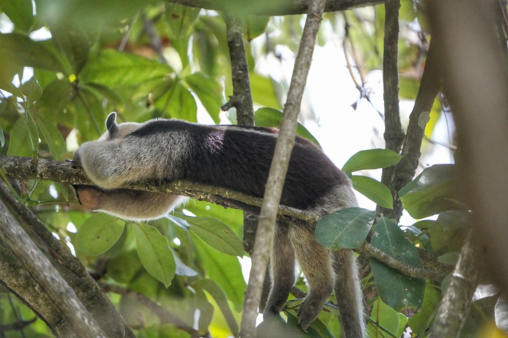 20 min plus tard on entame la dernière partie de la marche. La chaleur commence à être étouffante alors heureusement qu’on se trouve la majeure partie du temps en forêt. Tout à coup, on comprend qu’on vient de tomber sur un animal qu’on espérait voir la veille. Il s’agit de l’animal préféré de Carlos. On le repère grâce son odeur. Et miracle il est là, le fourmilier arboricole 🤗 on est comme des enfants ! Ça me rebooste pour les derniers kms.