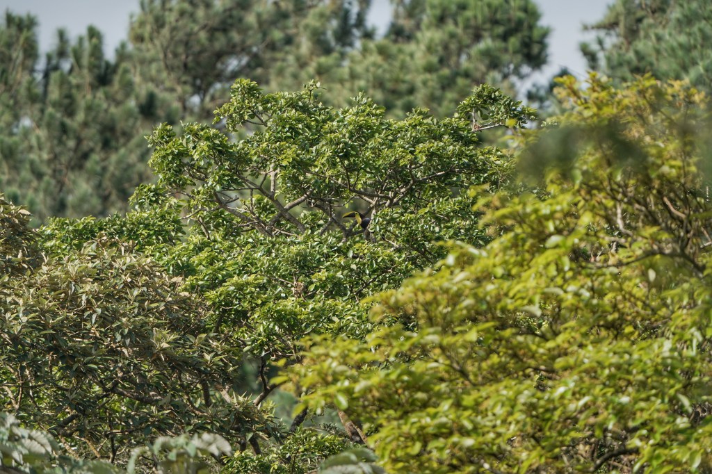 On arrive devant une tour d’une vingtaine de mètres afin de prendre de la hauteur pour espérer voir le volcan de plus prêt. Bon on nous avait prévenu qu’elle bouge beaucoup et que c’est assez impressionnant surtout si on a le vertige. Je me suis arrêté au milieu et Poupi a continué presque tout en haut, pas franchement à l’aise mais sans regret parce que j’ai pu apercevoir d’un coup d’œil un toucan qu’on entendait au loin 😁 ! Quelques mètres plus loin, on se fait même stopper par une dame avec un gilet Nat Geo qui nous demande de quelle espèce de toucan il s’agit. Par chance j’avais pu le prendre en photo 😉.
