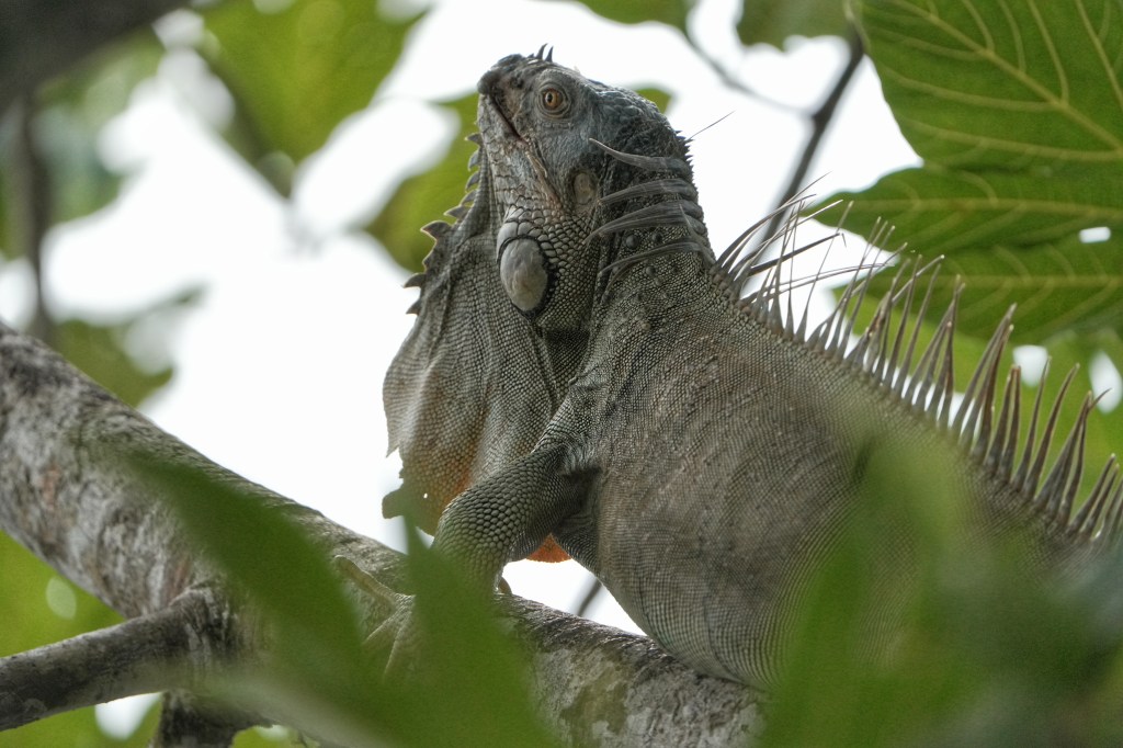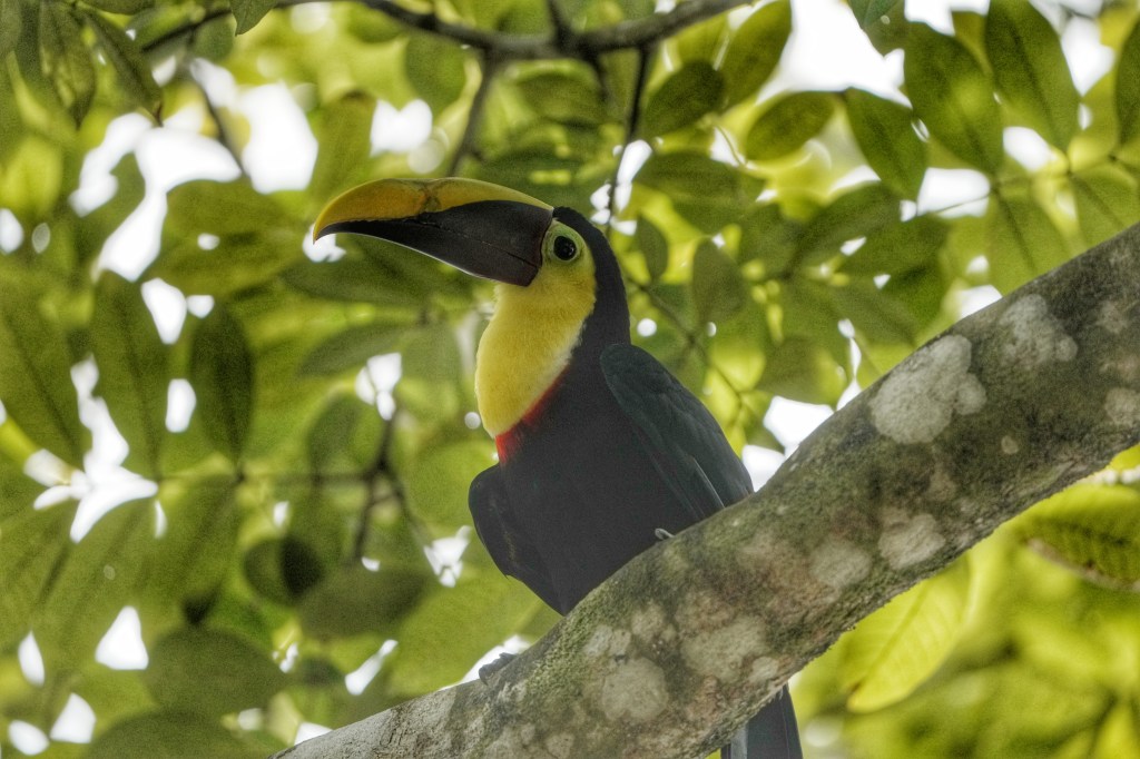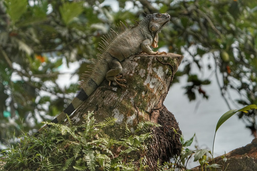 Et je crois que la vie a voulu nous faire un dernier gros cadeau : plusieurs toucans partout au dessus de nous. Je demande à Poupi de partir en courant chercher l’appareil photo (et oui la passion avant tout 😅) et comme notre logement n’est pas tout prêt le temps qu’il revienne les toucans se sont envolés. Il faut dire aussi que j’ai attiré les gens qui se sont un peu précipité pour les voir. Mais mon flair me guide dans un petit parc juste à côté où les toucans n’attendent que nous 🥰. Il y a également un énorme iguane 😱 je pense être resté au moins 1h à le photographier, désolé à lui il était vraiment photogénique. Je vous laisse vérifier par vous même avec les photos suivantes :